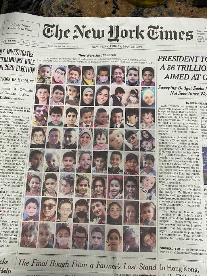 New York Times Publishes The Images Of Children Killed In Gaza On Front Page from theislamicinformation.com Topic pages aggregate useful news, archival information, photos, graphics, audio and video published on the topic in the new york times. With foreign reporting the underlying facts and background will be obscure for the vast majority of readers, so they have to. The new york times considers itself the world's leading newspaper, boasts about its foreign bureaus in far flung corners of the globe, and spares no expense to cover the important stories no matter where they occur. The sirens across southern israel were silent on friday, and the thunder of bombs bursting in gaza city was replaced by sounds of celebratory. Samar abu elouf for the new york times. May 19, 2021 · so far, israel's gaza bombardment has killed at least 227 people, including 64 children. May 20, 2021 · photo by samar abu elouf for the new york times. In israel, 12 people have been killed by hamas rockets.